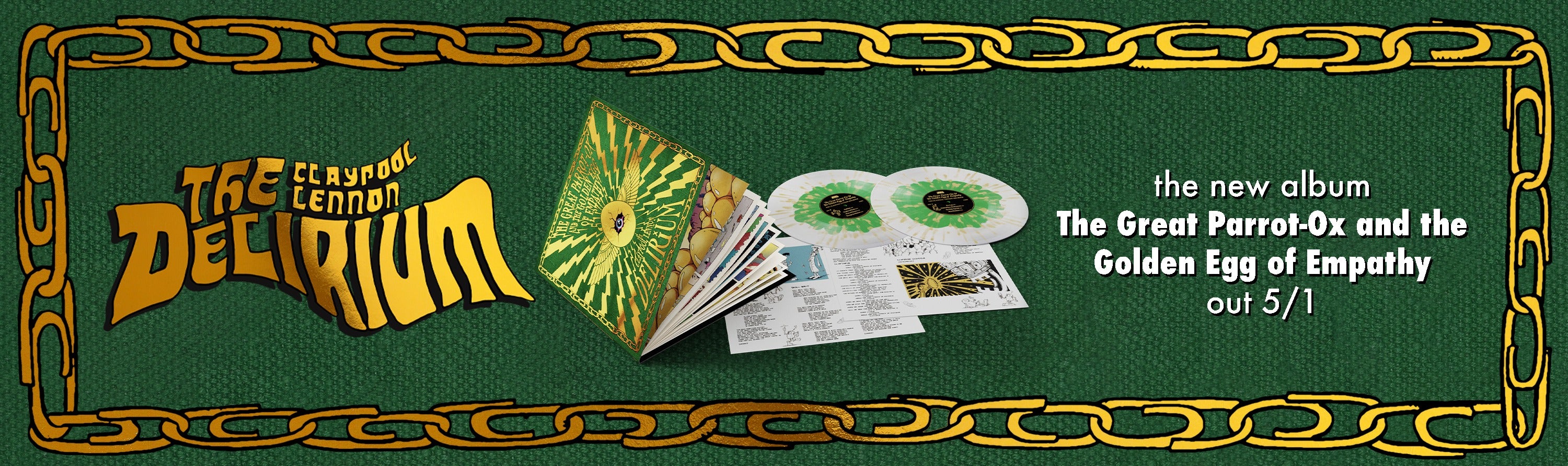 Claypool Lennon Delirium - The Great Parrot-Ox and the Golden Egg of Empathy - Exclusive Clear w/ Green and Gold Splatter 2xLP Vinyl